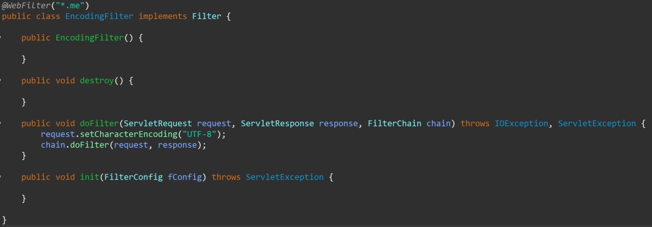 encodingFilter는 기존 servlet에서 request.setChracterEncoding("UTF-8");를 매번 작성해서 인코딩을 거쳐야 하는 불편함을 없애기 위해 필요하다.