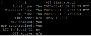 NTP 동기화 활성 여부는 timedatectl을 입력하여 다음 부분을 확인하면 된다.