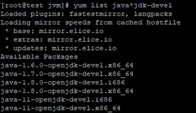 1. 설치할 수 있는 jdk 리스트 확인하기 (root에서 실행)