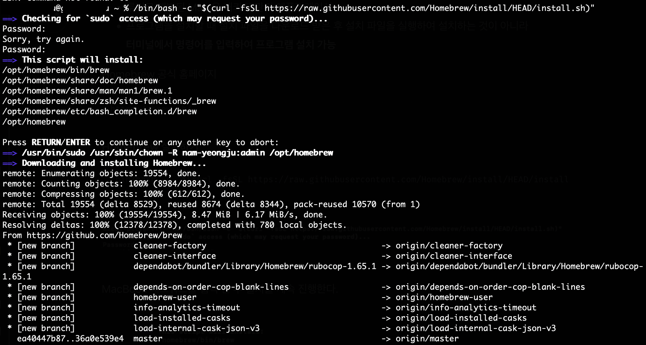 이 과정을 거치면 homebrew의 설치가 완료된다.