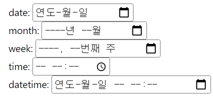 날짜 및 시간과 관련된 input 태그의 타입