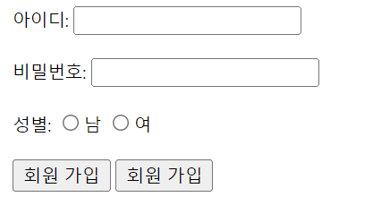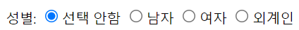 성별: <input type="radio">남 <input type="radio">여<br><br>